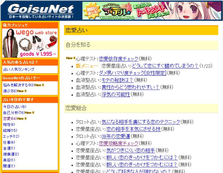 占いサイトの『GoisuNet』さんから一つだけやってみました!