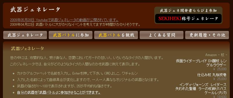 名前を入力するだけで、オリジナルの武器が出来るサイトです。