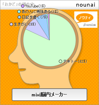 mixi脳内メーカーによる「おかど」の脳内パーセンテージ解析結果